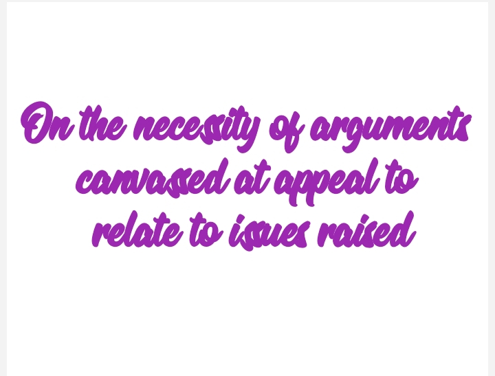 On the necessity of arguments canvassed at appeal to relate to issues raised